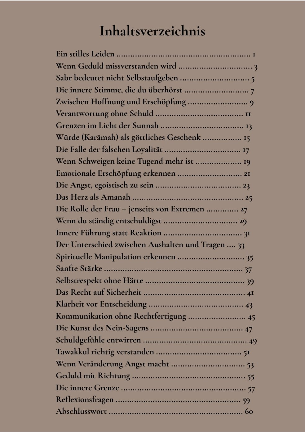 Und weil eine Frau, die innerlich klar und gefestigt ist, Beziehungen auf eine ruhige und ehrliche Weise führen kann.„Zwischen Sabr und Selbstaufgabe“ ist kein lautes Buch.